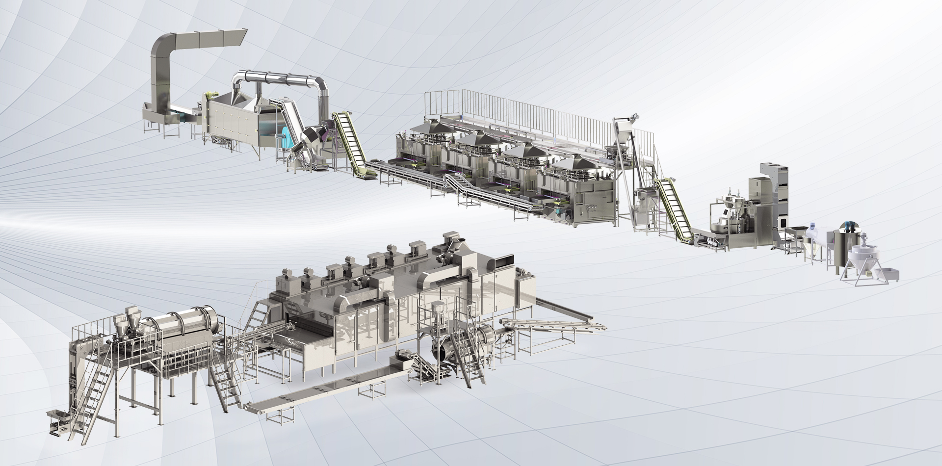 該生產線廣泛應用于花生、青豆、夏果、腰果等堅果仁裹衣烘烤加工。自動化生產,連續(xù)進出,真正實現(xiàn)一人多機,一鍵式操作,減少了人工強度及技術依賴性,保證產品質量穩(wěn)定性。
